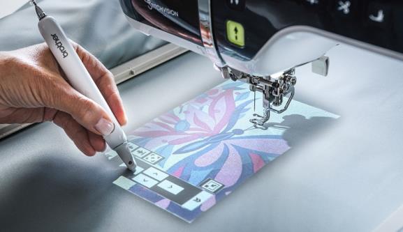 Projektor-Technologie: Sehen Sie es, bevor Sie es nähen und stickenSehen Sie, wie sich Ihre Entwürfe auf einer Projektionsfläche von 200 x 127 mm vor Ihnen ausbreiten. Die Projektionsfläche der Luminaire XP3 wurde nicht nur um das 2,6-fache vergrößert und der Projektionswinkel von 90 auf 180 Grad erhöht, sondern sie bietet auch eine klarere und schärfere Auflösung. | |