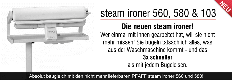 Wer einmal mit einer Bügelmaschine steam ironer (baugleich mit dem PFAFF Schnellbügler) gearbeitet hat, will sie nicht mehr missen! Sie bügeln tatsächlich alles, was aus der Waschmaschine kommt - und das 3x schneller als mit jedem Bügeleisen. |