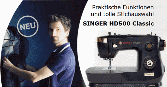 | Viele praktische Funktionen und eine tolle Stichauswahl Die SINGER HD500 Classic ist perfekt für einfache Näharbeiten und kleine Ideen zwischendurch. Mit 32 Stichen beziehungsweise 110 Stichanwendungen haben Sie Zugriff auf alle wichtigen Stiche. Auf dem Wählrad sind nicht nur Stiche abgebildet, sie können auch mit nur einem Dreh ausgewählt werden. |