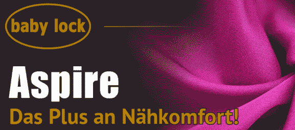 | Machen Sie Ihr Outfit komplett, die neue Aspire von baby lock macht es möglich. Die Aspire bietet Ihnen alle Möglichkeiten, um die Mode von heute und morgen einfach, schnell und professionell zu gestalten. Ob luftige transparente Stoffe, ob Jerseystoff mit extravaganter Saum- oder Trägerverarbeitung, mit der Aspire haben Sie Ihren großen Auftritt. baby lock - Der Nähspaß fängt schon beim Einfädeln an. Overlock-, Cover- oder Kettenstiche praktisch vereint in einer Maschine. Ausgestattet mit 5 Fäden lässt sie sich leicht für den gewünschten Arbeitsgang einfädeln oder umstellen. Dank separater Fadenwege bestimmen Sie die Einfädelreihenfolge. Kein lästiges verfolgen von Einfädelpunkten oder Verwirrung durch freihängende Fäden. Alles ist an seinem Platz. Der Clou, das Einfädeln der Greifer! Gewünschten Greiferfaden in den dafür vorgesehenen Greiferkanal stecken, Hebel nach unten drücken und per Luftdruck wird der Faden bis in die Greiferspitze geschossen. So funktioniert es bei allen 3 Greifer Fäden und im Nuh und ohne Mühe ist die Aspire nähbereit. Fadenspannung? Kein Problem! Wer schon immer Angst vor dem Einstellen der Fadenspannung hatte, kann sich freuen! Keine Einstellungsprobleme bei unterschiedlichen Garnen, Stoffen oder Stichen. - Dank unseres automatischen Fadenzufuhrsystems. Der Witz, es funktioniert! Sie werden staunen, saubere Nähte sind kein Zufall mehr! Hatten Sie bisher Frust durch ungewollte Nahtkräuselungen oder gewellte Nähte bei Maschenware und feinen Geweben? Die Lösung, der verstellbare Differentialtransport der neuen baby lock Aspire. |
