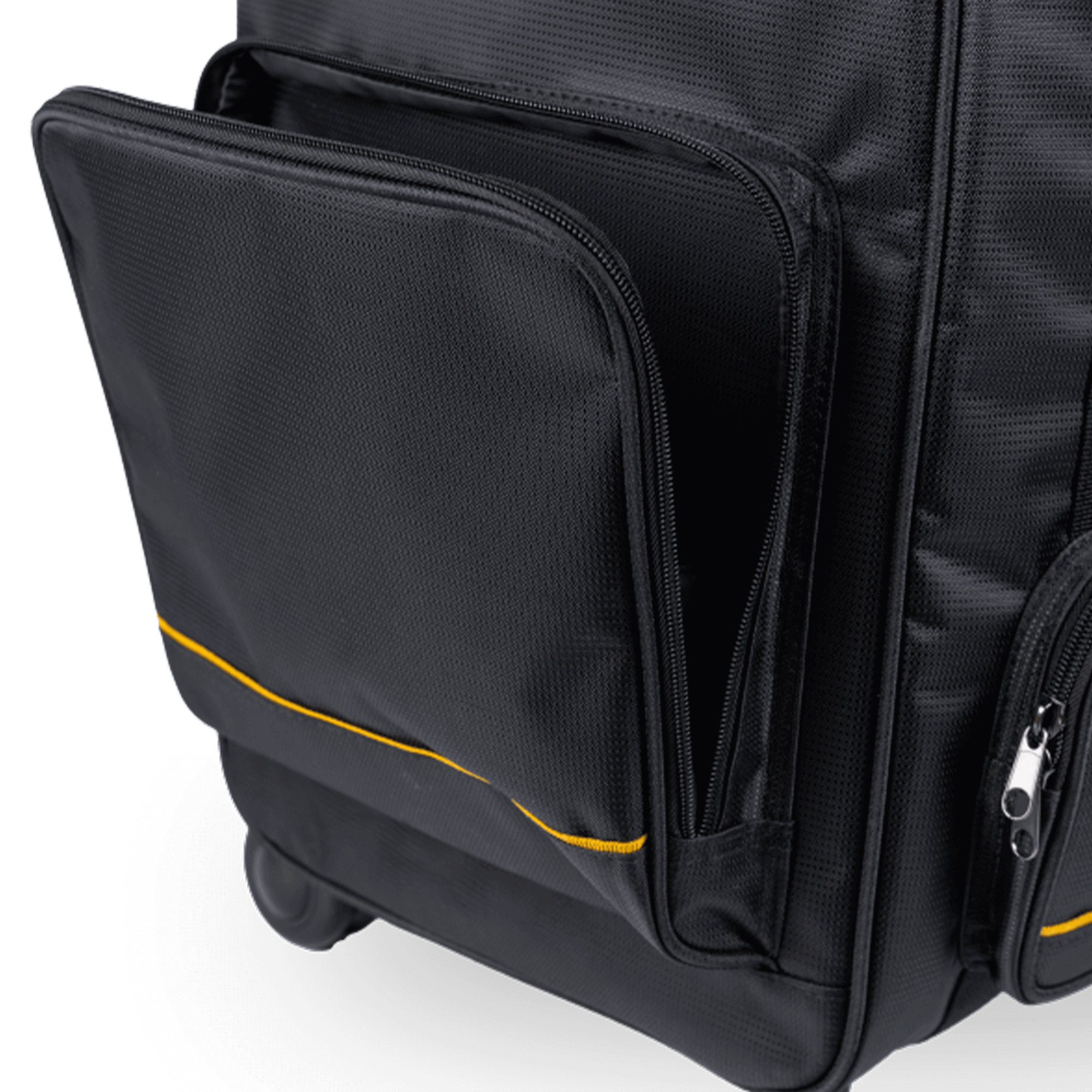Dank der vielen Innen- und Außenfächer ist alles griffbereit verstaut: Nähfüße, Garne, Stoffe oder weiteres Zubehör finden hier einen sicheren Platz. Der Koffer lässt sich durch Rollen und den ausziehbaren Teleskopgriff mühelos ziehen. Seitliche Tragegriffe erleichtern das Verstauen im Kofferraum.