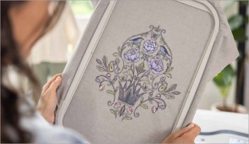 ![]() | Platz zum ErstellenMit einer großzügigen Stickfläche von 360 x 240 mm haben Sie immer genug Platz, um an großformatigen Stücken zu arbeiten. |