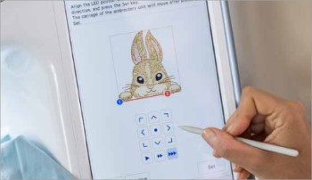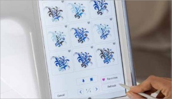 ![]() | Klares DisplayWählen Sie Ihre Entwürfe auf dem großen 10,1 Zoll High-Definition-LCD-Display aus – scrollen Sie mühelos durch die Menüs, navigieren Sie intuitiv mit Hilfe der eindeutigen Symbole durch die Maschine und bearbeiten Sie Ihre Muster auf dem Bildschirm. |