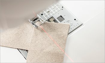 ![]() | Nähen Sie die geradesten Nähte Gerade nähen war noch nie so einfach wie mit der integrierten Laserführung der CX1. Sie erstreckt sich bis zu 19 mm auf beiden Seiten der Nadel und ist selbst auf dunklen Stoffen leicht zu erkennen. Halten Sie exakte Nahtzugaben ein oder nähen Sie perfekte und gerade Dekorstiche. |