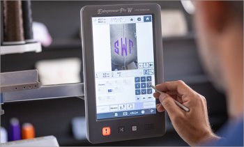 Vernetzung per WLAN und mobile App My Stitch MonitorDank Vernetzung per WLAN können Sie den Stickvorgang mit der mobilen App My Stitch Monitor auf Ihrem iOS- oder Android™-Gerät verfolgen. Damit verfolgen Sie den Fortschritt Ihres Projekts und können sich benachrichtigen lassen, wenn ein Garnwechsel ansteht oder die Stickerei fertig ist. |