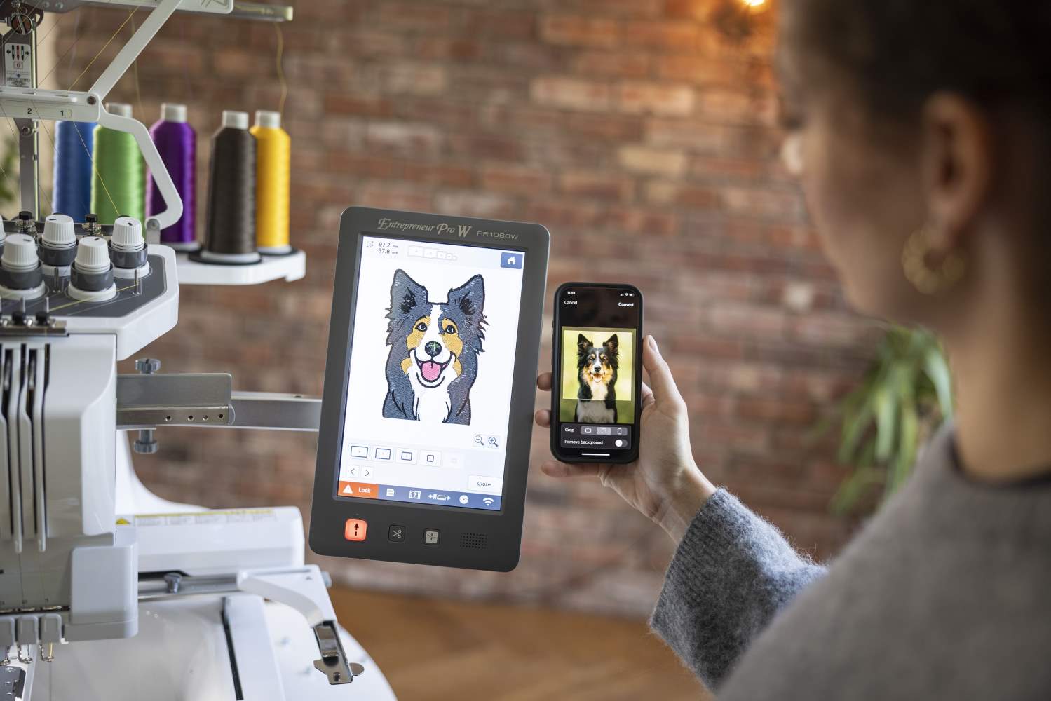 Kreativität in Ihrer HandJede PR1060W ist mit einer umfangreichen Musterbibliothek und einfach hinzuzufügenden Alphabeten ausgestattet, um alle Ihre Ideen umsetzen zu können. Mit der Bildschirmbearbeitung, der Kamerapositionierung, der kabellosen Übertragung von Mustern und dem Colour Shuffling machen Sie mehr aus Ihrer Kreativität.