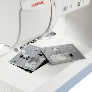Schnellwechsel-StichplattenEinfach auf die Entriegelung drücken und die Stichplatten wechseln. Die MC 1000 erkennt die Stichplatte und stellt nur dazu passende Stiche und Nähtechniken bereit. Nadelbrüche werden weitgehend vermieden. |