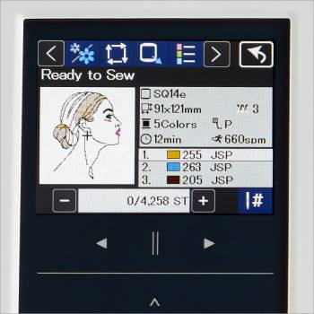 Alle Informationen, die Sie zum Sticken und Bearbeiten von Mustern brauchen. Er zeigt das Muster an, bevor Sie anfangen zu sticken.