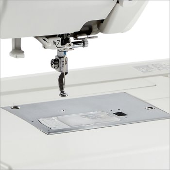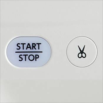 Einfach per Tastendruck beide Fäden abschneiden. Die Funktionen Start/Stopp, und Fadenabschneider liegen direkt am Arbeitsbereich und sind so schnell erreichbar.