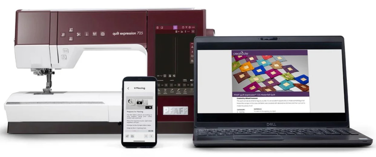 Integrierte Schritt-für-Schritt-Anleitungen, Tutorials und Ratgeber unterstützen beim Nähen von Reißverschlüssen, Säumen, Kragen, Rüschen, Armbündchen, Quilten und vielem mehr. - Das Original IDT™-System